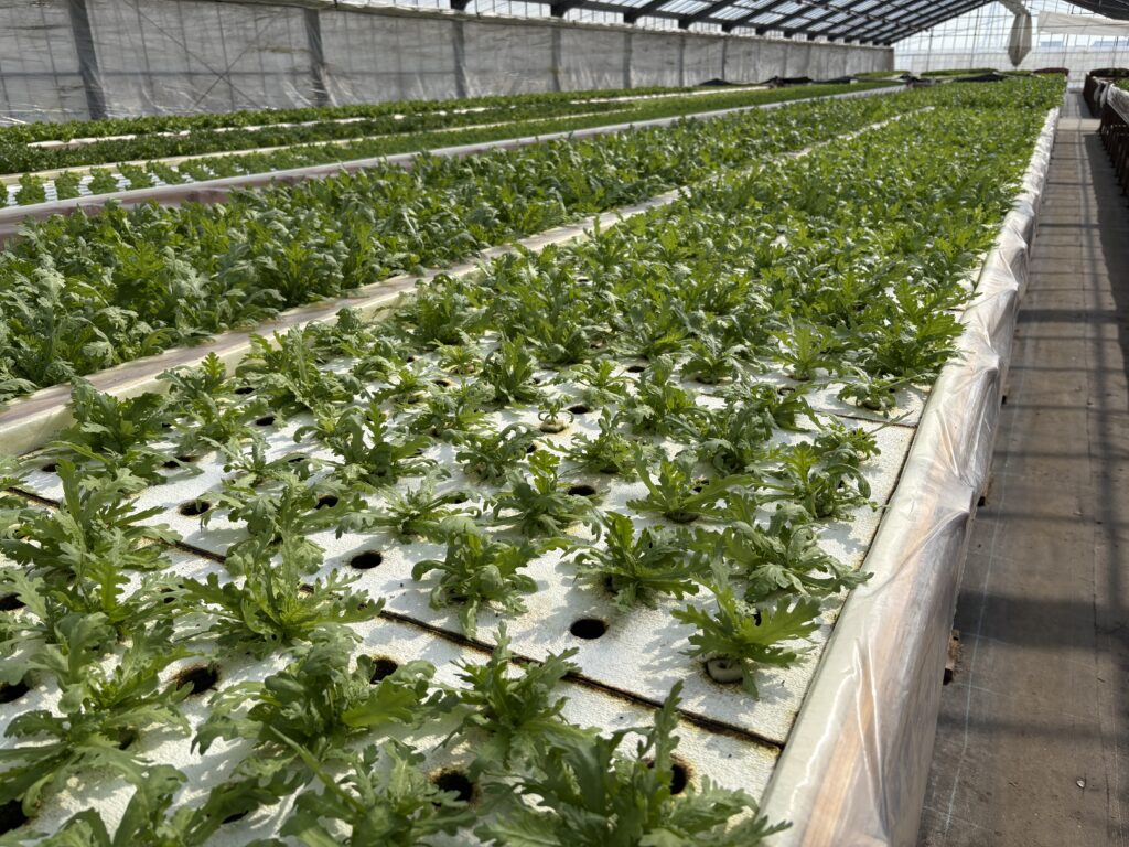 水耕栽培の野菜はやわらかいので火入れは短くサッと火を通す、サラダでも食べられる。